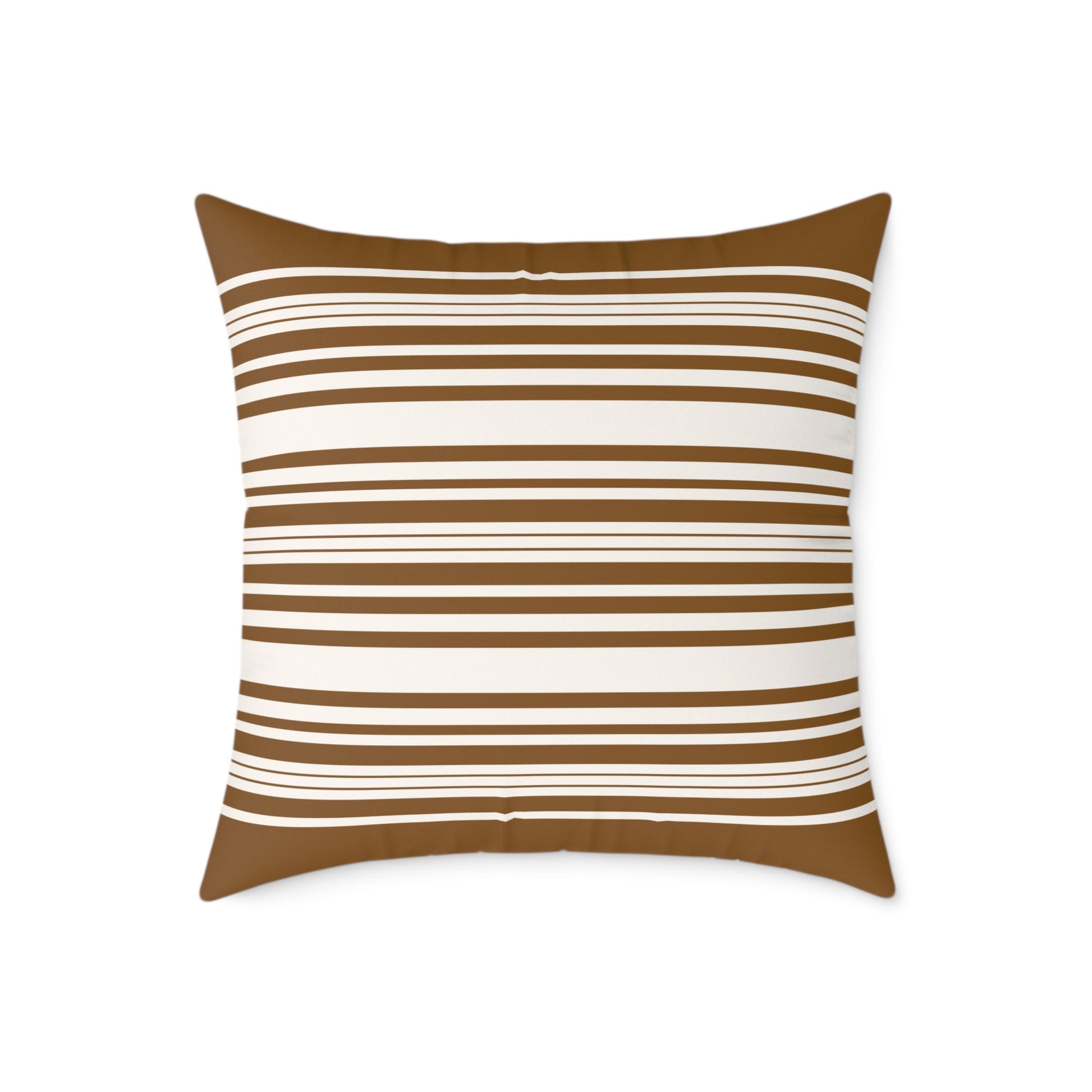 SSoft, structured, and warmly patterned — this square poly canvas pillow brings a quiet, cozy rhythm to living rooms, reading nooks, and cabin corners. The fine-weave polyester canvas feels smooth to the touch while the stout polyester filling keeps the pillow plump and supportive after everyday use. Double-sided printing preserves the striped design from every angle, and a concealed zipper keeps edges clean while letting you remove the cover when needed. Available in five sizes so you can layer it with other cushions or let it stand alone as a calm, textured accent for autumn evenings, small gatherings, or slow Sunday mornings.