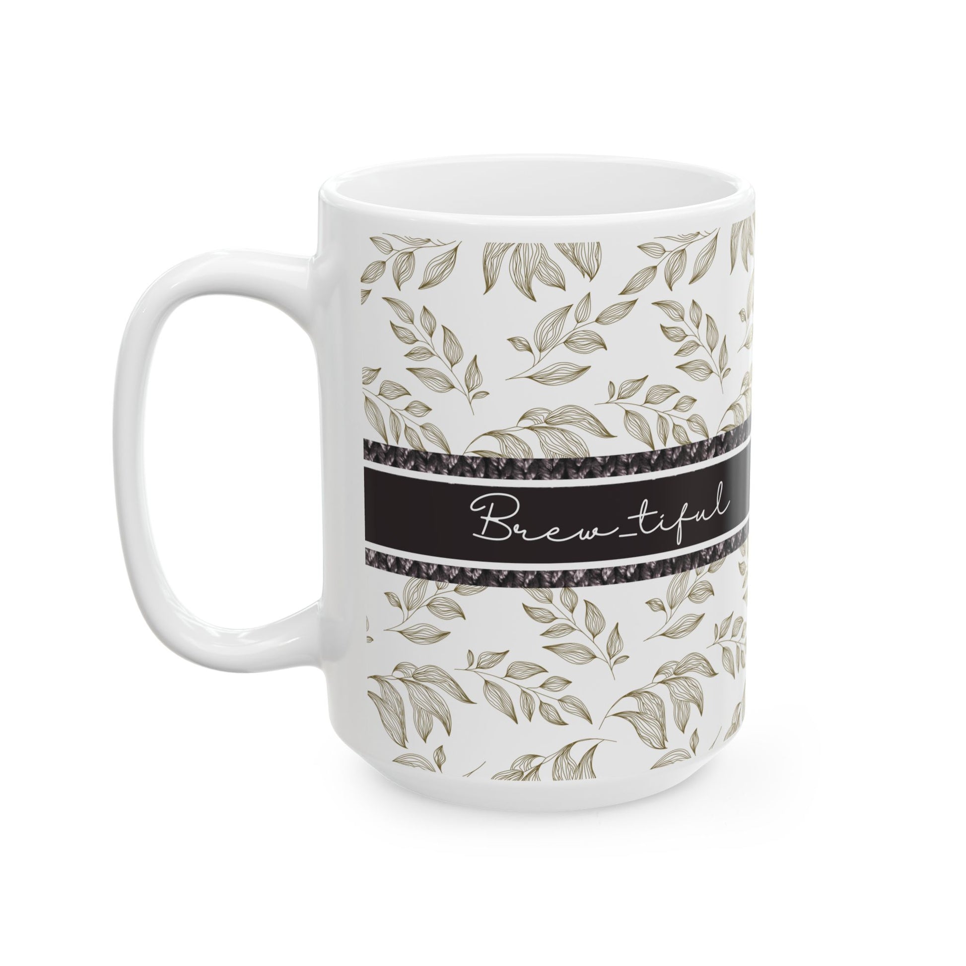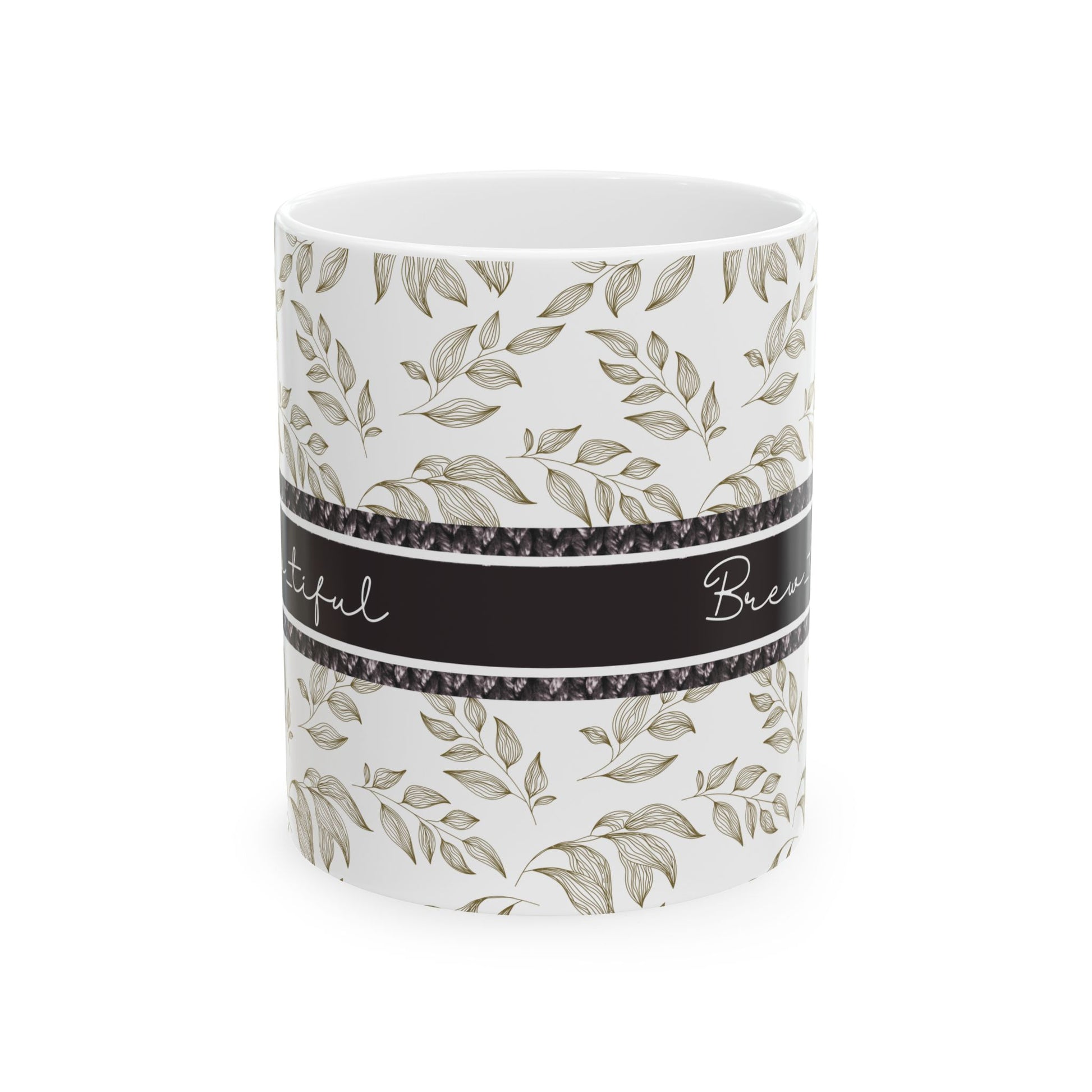 Elegant Leaves Ceramic Mug - Motivational Drinkware