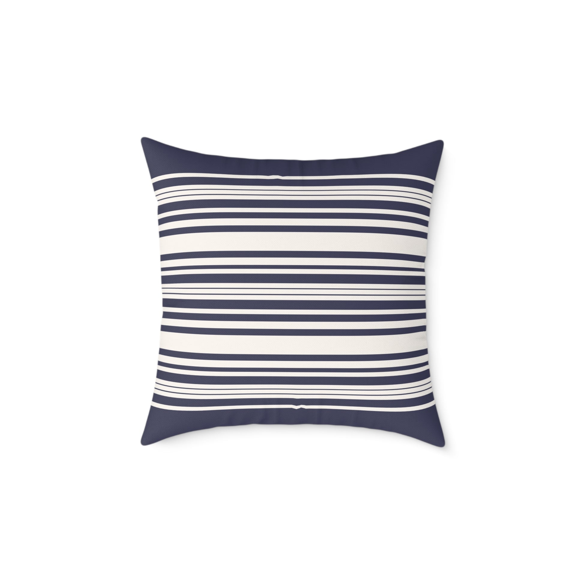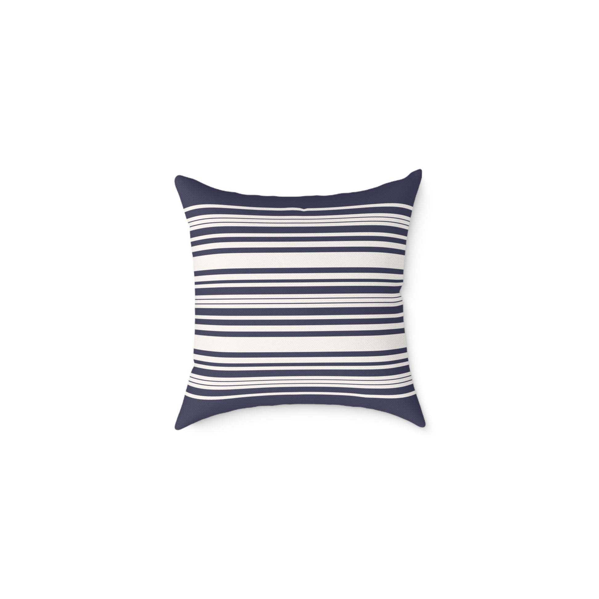 Low-key coastal charm meets everyday comfort. This square poly canvas pillow brings a calm, salty breeze to sofas, reading nooks, or front-porch benches with its narrow navy-and-cream stripe and soft, textured canvas surface. The fabric holds color brilliantly, so the stripes stay crisp through seasons of use. The hidden zipper keeps lines clean while the sturdy polyester fill keeps the cushion plump and supportive—great for leaning into during slow mornings with a book or for tucking onto a floor spot when friends drop by. Choose from five sizes to balance proportion across layered cushions or to anchor a minimalist seating area.