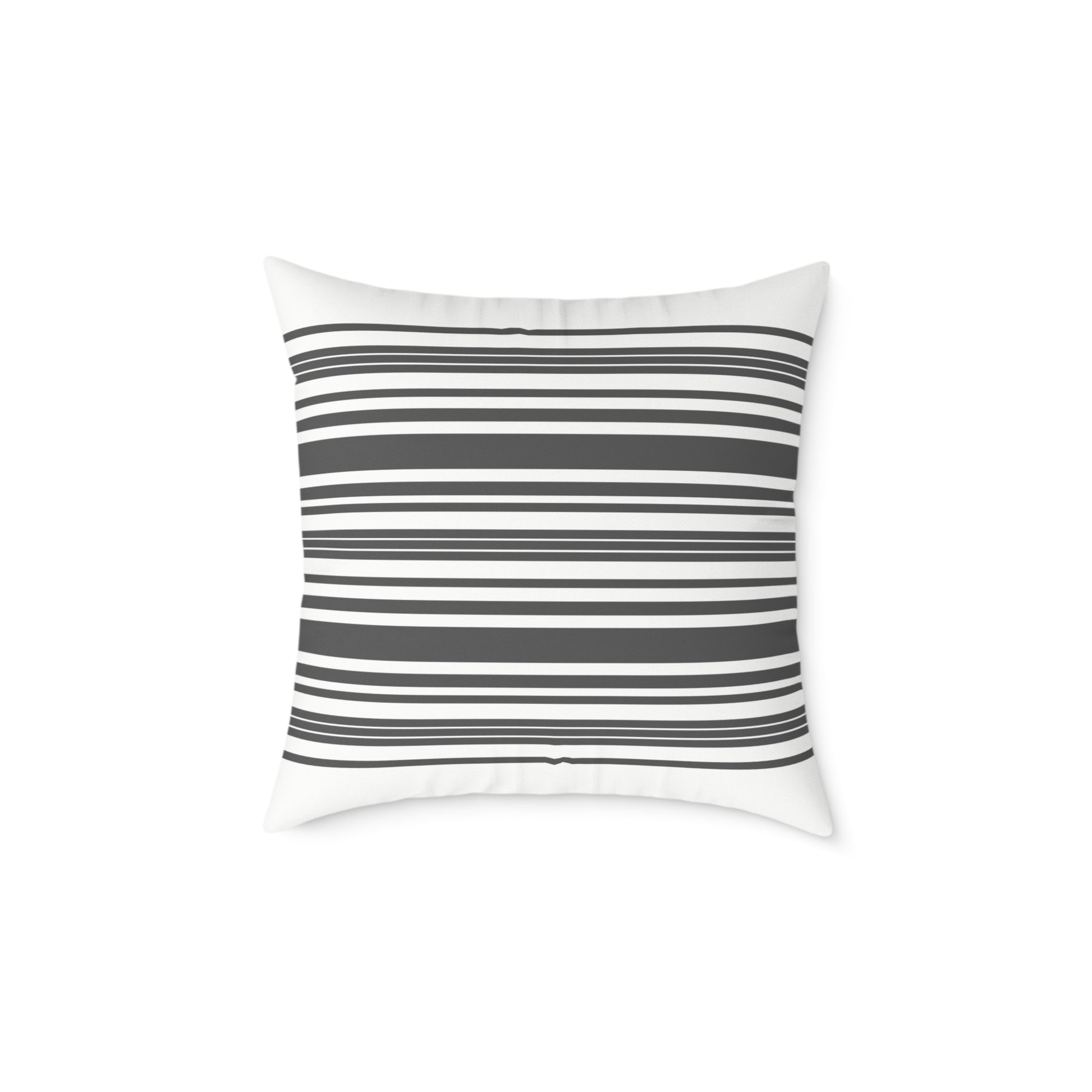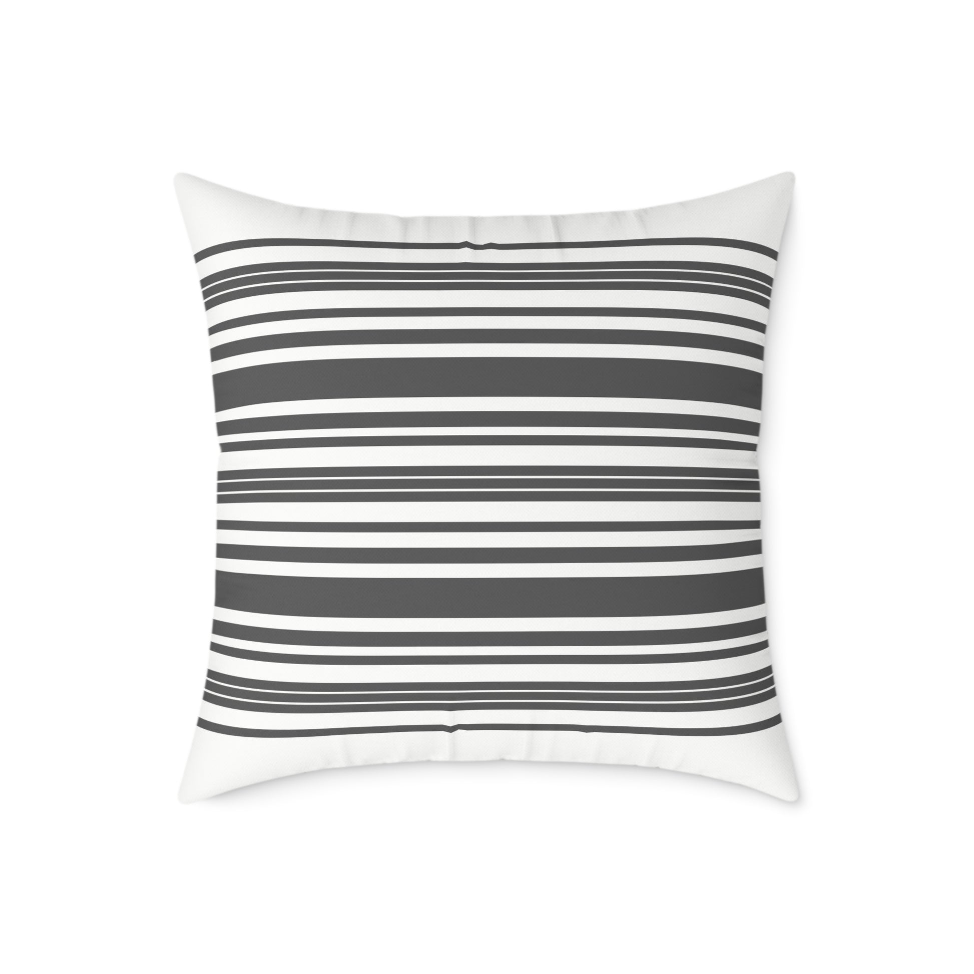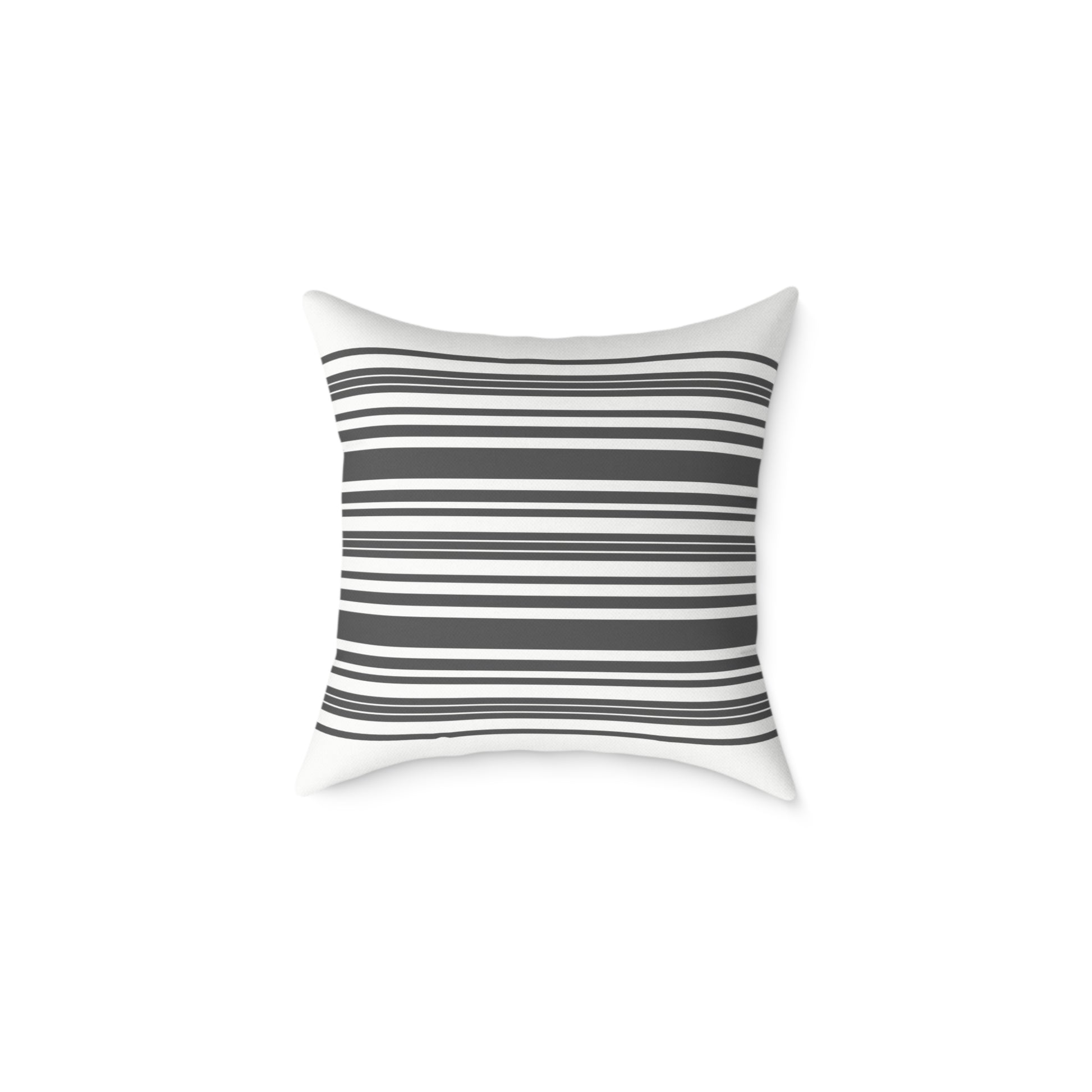 This square poly canvas pillow brings quiet, modern comfort to living rooms, reading nooks, and cozy corners. The clean monochrome stripe design feels calm and collected — like a slow morning with a warm mug and soft light through the window. The canvas surface has a subtle texture that reads like handwoven fabric, while the sturdy polyester fill supports you on the floor or on the sofa without collapsing. Double-sided printing keeps the look consistent from every angle, and the concealed zipper keeps lines smooth. Available in multiple sizes to suit a window seat, armchair, or floor setup.